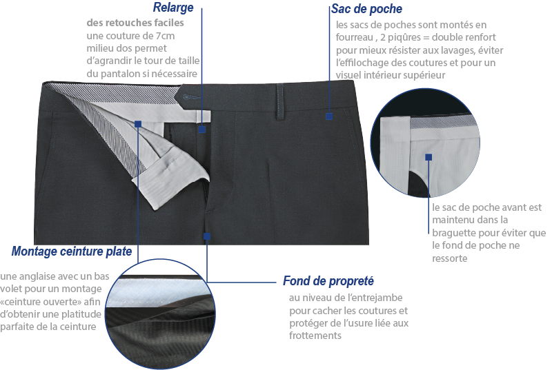 Grâce à la proximité de nos ateliers de production pantalons et pièces à manches, nous avons développé notre propre savoir-faire de montage et surtout conservé une vraie vision industrielle de notre métier.